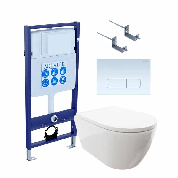 Комплектация: Инсталляция для унитаза Aquatek INS-0000012, унитаз подвесной Aquatek ПОЛАРИС AQ0700-00 с крышкой soft-close, панель смыва Aquatek, комплект крепления Aquatek KKI-0000002