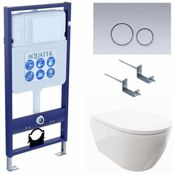 Комплектация: Инсталляция для унитаза Aquatek INS-0000012, унитаз подвесной Aquatek ПОЛАРИС AQ0700-00 с крышкой soft-close, панель смыва Aquatek, комплект крепления Aquatek KKI-0000002