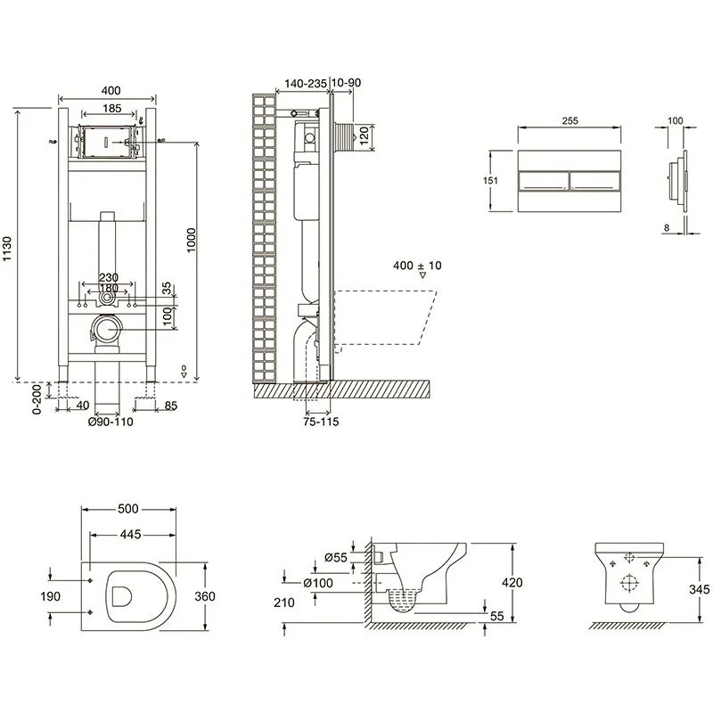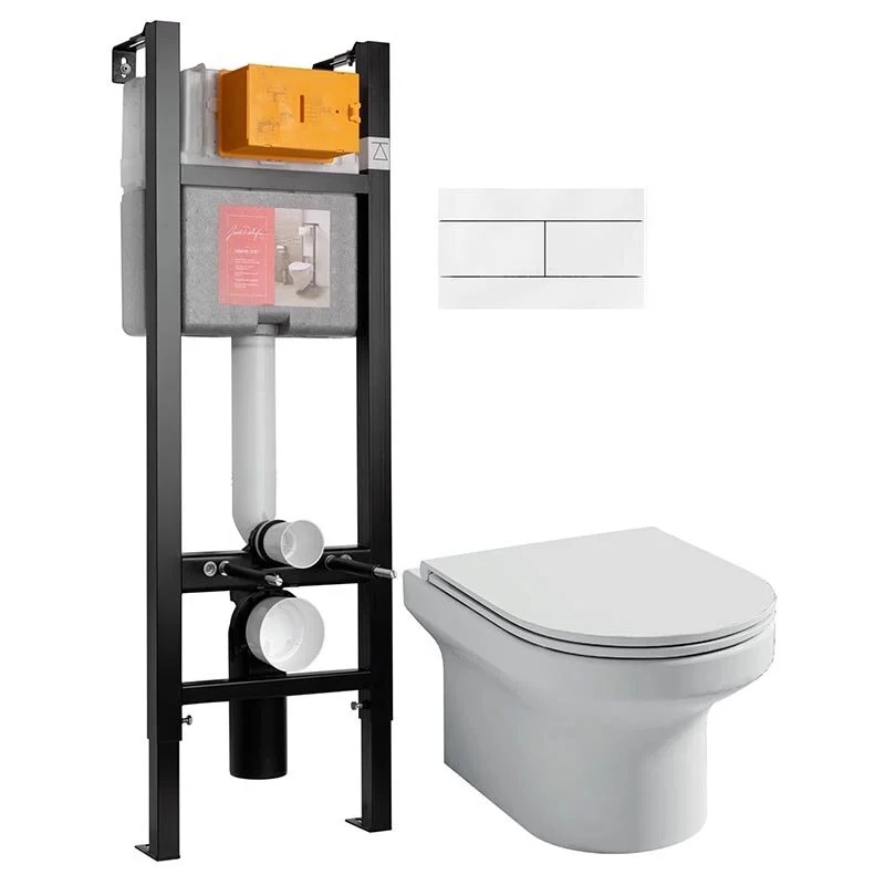 Инсталляция Jacob Delafon 40 см, с безободковым унитазом Elite EDX114RU-00, сиденье тонкое микролифт, клавиша белая, комплект E21755RU-00 (E33131RU+EDX114RU+E4316-00)