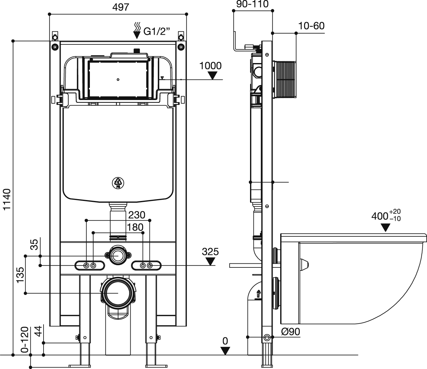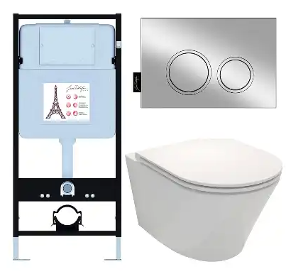 Rodin + Комплект подвесного унитаза с сиденьем, инсталляцией и двойной клавишей смыва, хром(EDY102-00, E23280-00, E38066-CP, E38064-NF), в 1 коробе