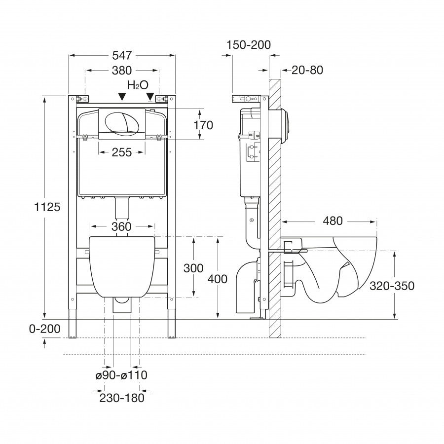 Инсталляция с унитазом Roca Meridian с сиденьем микролифт, с клавишей смыва хром глянцевый (7.8931.0.411.0)