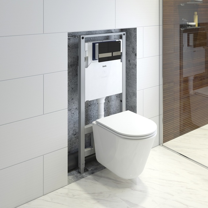 Надёжная цельная стальная рама инсталляции имеет возможность регулировки по высоте и подходит для монтажа в любых, в том числе, узких, пространствах.