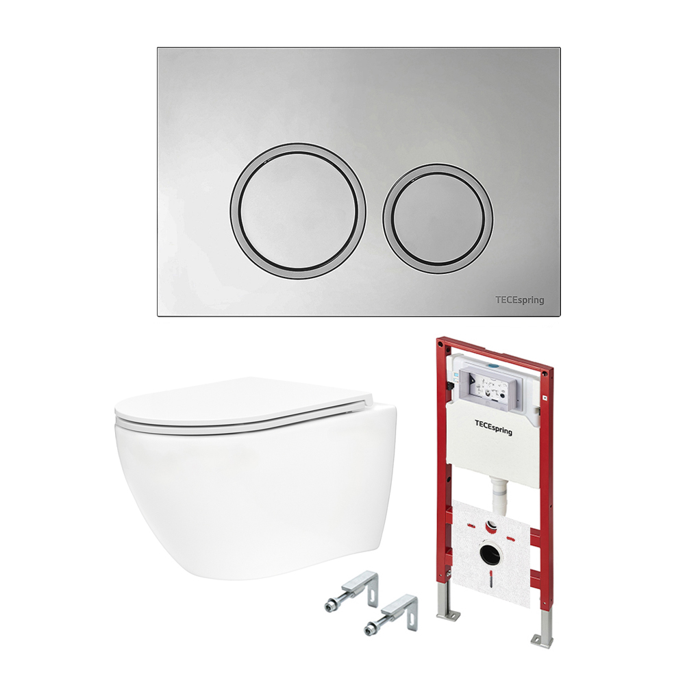 Инсталляция с унитазом TECEspring Base с клавишей хром глянц. унитаз модель R (K401101WCR)