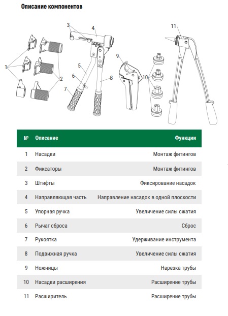 Ручной инструмент ARROWHEAD специально разработан для соединения аксиальных фитингов (надвижных латунных фитингов) с трубой из сшитого полиэтилена PEX, что обеспечивает высокую точность и герметичность