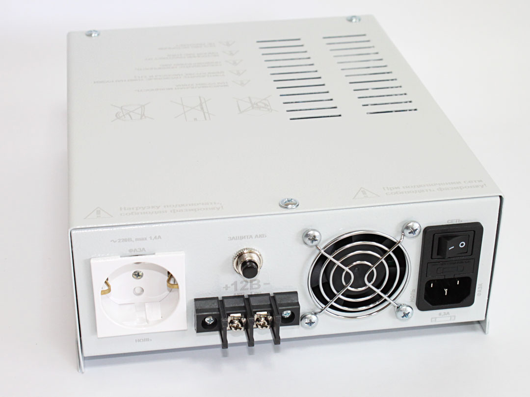 время технической готовности к работе: подключена сеть 220 В и АКБ — 10 секунд, подключена сеть 220 В — 8 секунд