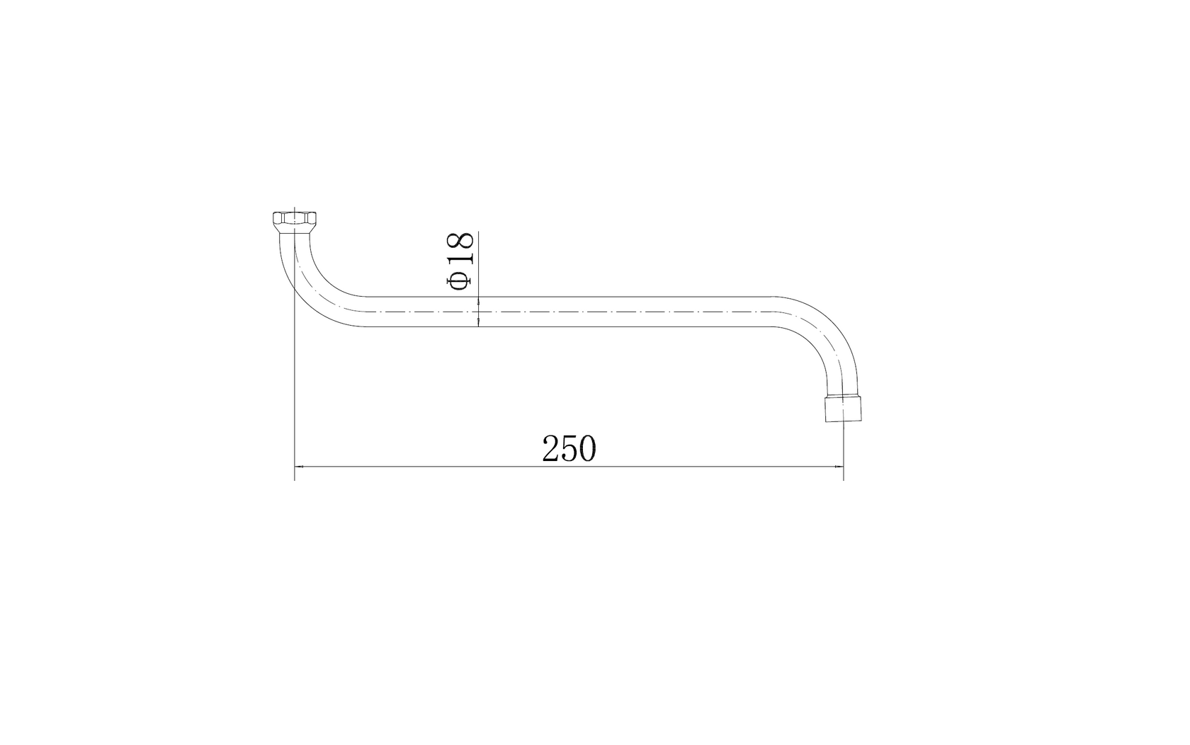 излив круглый S-образный металлический с аэратором, L=250 мм, D=18 мм