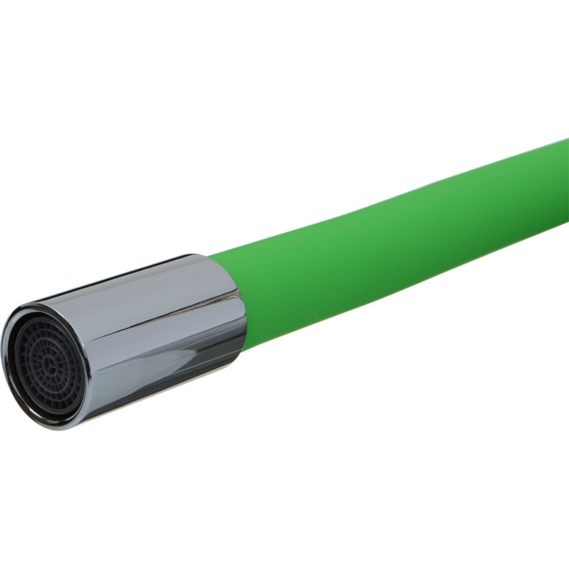 Излив гибкий салатовый с аэратором, 20653 присоединяется к смесителю и предназначен для подачи воды из смесителя в раковину или ванну. В комплект поставки излива входят гайка и уплотнитель.