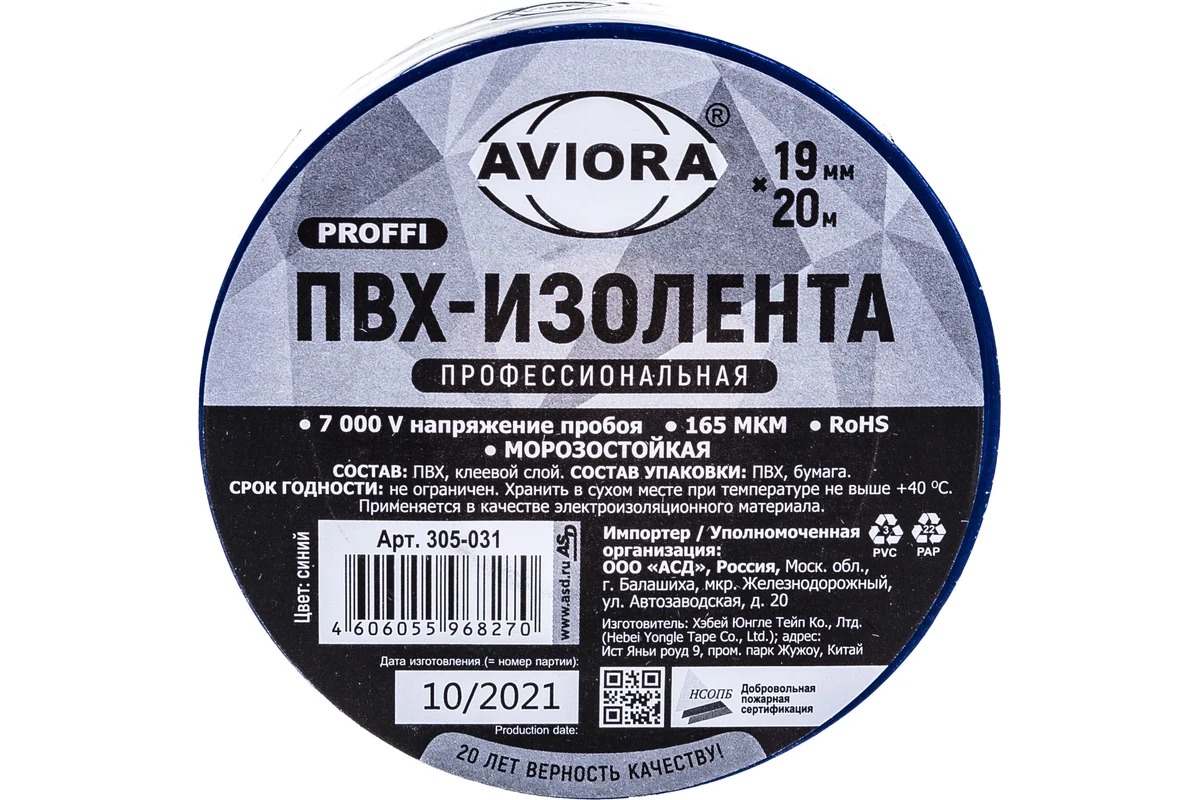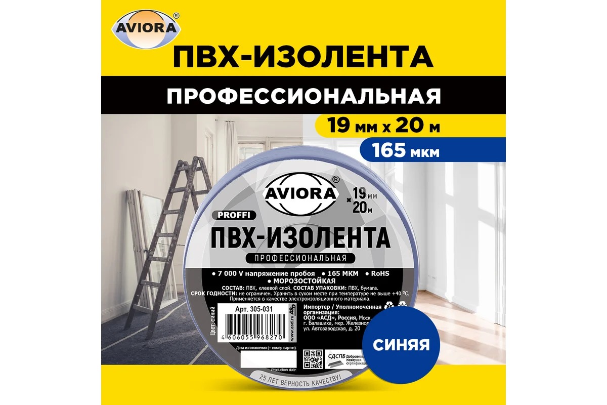 Изолента ПВХ 19 ммх20 м профессиональная Aviora (синяя) (305-031)