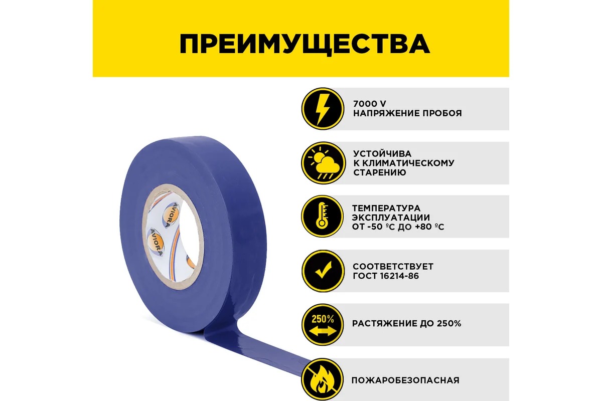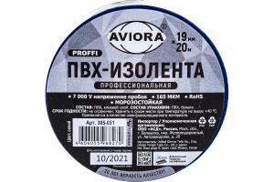 Изоляционная лента AVIORA - это незаменимый расходный материал для изоляции, жгутирования и маркировки проводов. Изолента выполнена из ПВХ (PVC) и имеет клеевой слой из натурального каучука. Материал ПВХ и входящие в его состав добавки придают изоляционной ленте AVIORA высокую эластичность, устойчивость к воздействию внешних факторов и прочность.