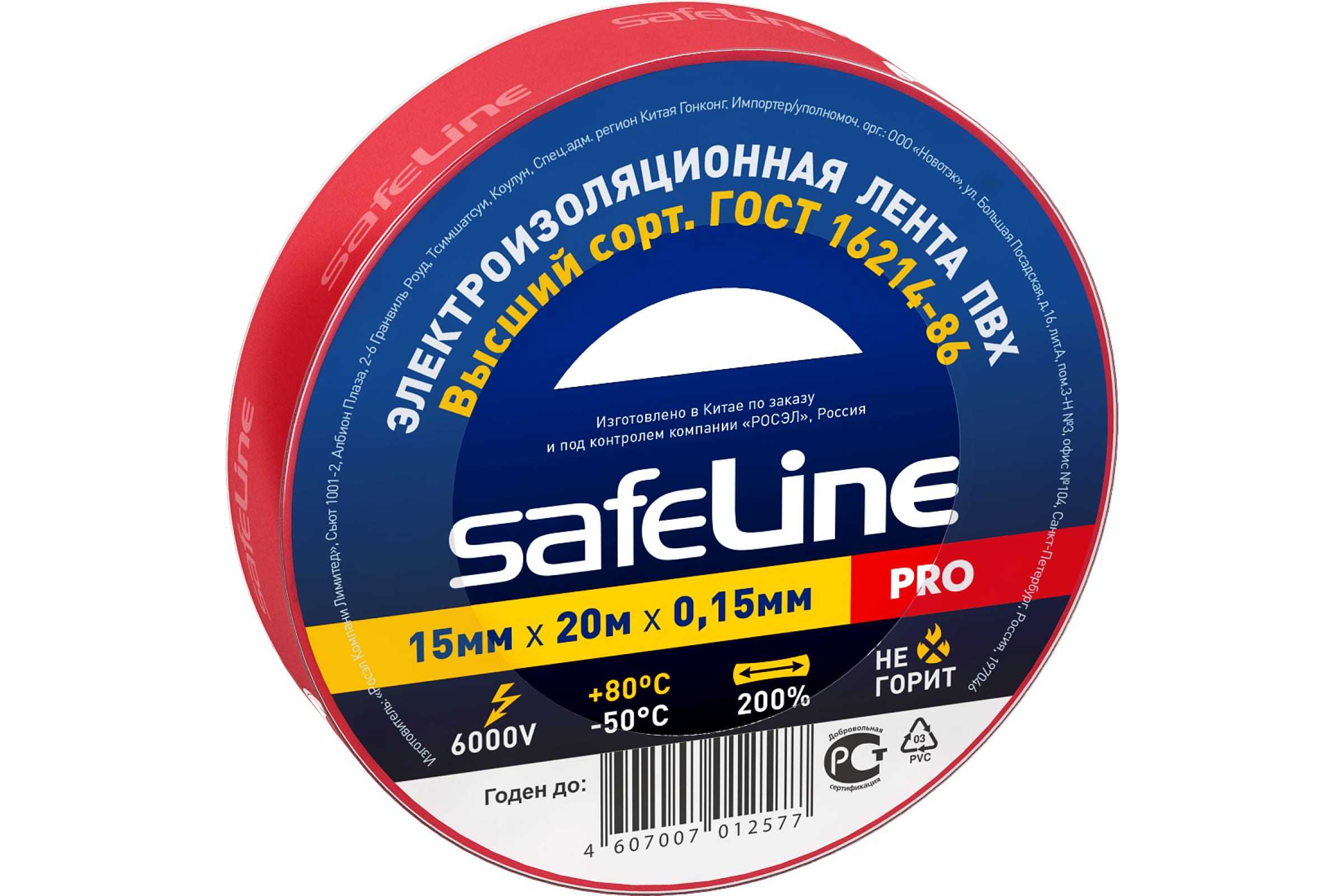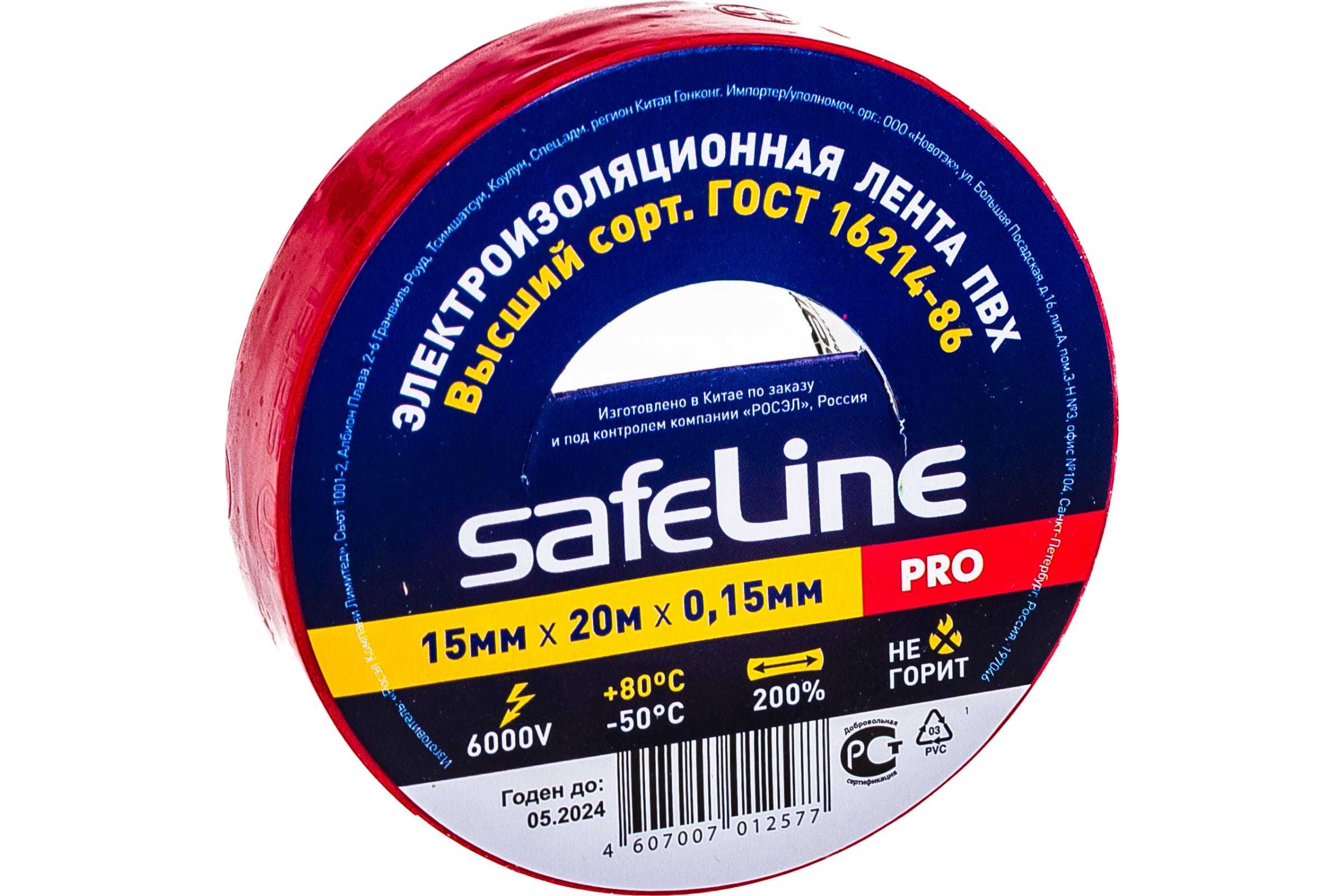 Изолента Safeline 15/20 красный 9362 используется для изоляции контактов проводов и создания скруток внутри и снаружи помещений во время мелкого ремонта. Модель имеет широкий диапазон рабочих температур от -50 до +80?С. Основа из ПВХ обладает высокой механической прочностью (коэффициент удлинения - 200%) и не поддерживает горения.