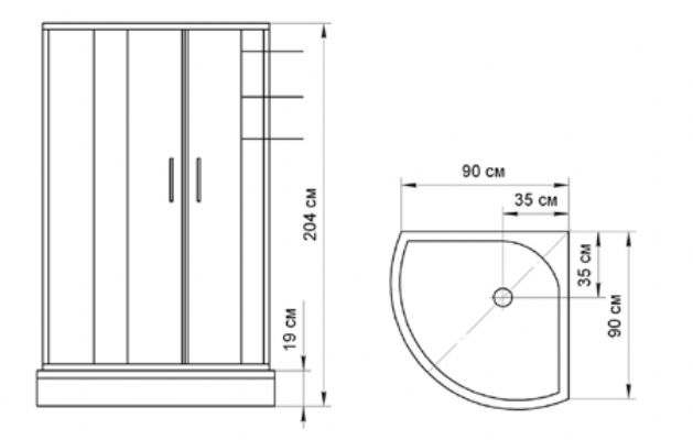 Стеклянные задние стенки, купол, полочка для шампуня.