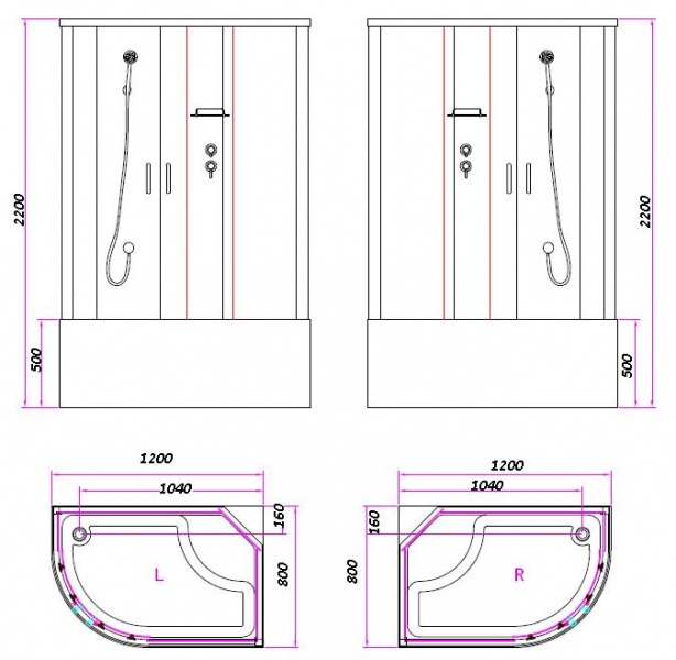 Кабина душевая BandHours Orion 800х1200х2200 L