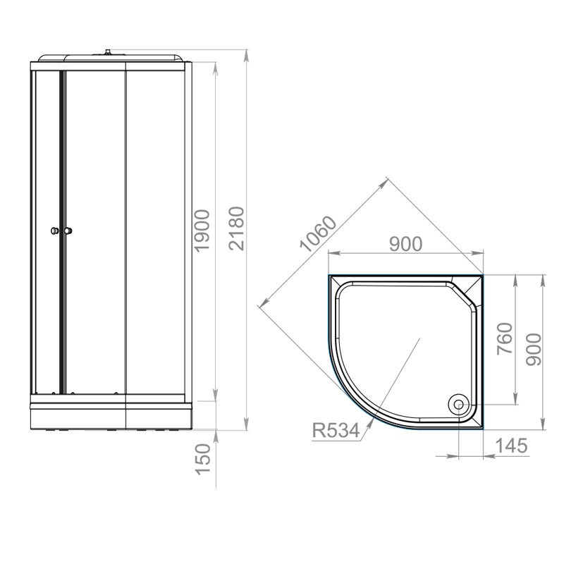 Угловая душевая кабина со стекляными прозрачными дверцами и белыми стенками и профилем. Низкий поддон. Открытие и закрытие двери одной рукой. В комплекте смеситель, верхний душ и ручной душ на гибком шланге. Полочка для ванных принадлежностей. Душевая кабина укомплектована сливными кнопками с системой забора волос и другого мусора, что позволяет сократить денежные расходы, связанные с чисткой или заменой канализации. Поддон усилен сплошной плитой ДСП 16 мм. Поддон, стенки и крыша изготовлены из прочного санитарного акрила. Завод находится в России и разработал уникальную конструкцию профиля, благодаря которой, горизонтальный профиль ложится не рядом с бортиком, а на бортик, и не имеет движения по поддону, что обеспечивает жесткость конструкции, а отсутствие зазора между профилем и бортом препятствует скоплению трудноизвлекаемой грязи. Формы деталей для душевых кабин изготавливаются на станках ЧПУ, что дает деталям стыковаться друг с другом без малейших зазоров.