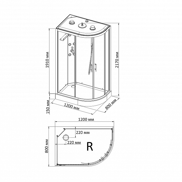 Кабина гидромассажная BandHours Cristal R 120х80 стекло прозрачное, профиль хром
