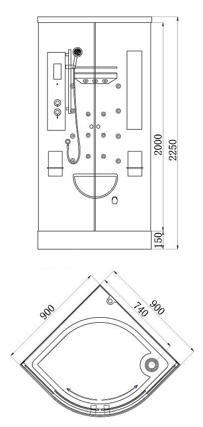 Монолитная задняя стенка из сантехнического акрила с сиденьем и 100% усилением, купол, полочки для шампуня, вмонтированное зеркало, поддон с водозащитным бортиком и устройством слива, смеситель с 5-и позиционным дивертером, душевой стойкой и душевой насадкой, раздельный гидромассаж 17 форсунок, «Тропический дождь», многофункциональная «Турецкая Баня», сенсорный пульт «TouchScreen» для управления всеми электронными компонентами, Пульт дистанционного управления, Аромотерапия, Подсветка, Радио, «Вентилятор», система «Easy Sliding» для комфортного движения дверей. Гарантия на товар распостраняется на протяжении 24-х месяцев. Душевая кабина включает в себя прочность, долговечность работы роликовой системы хода дверей, прочные каленые стекла, сантехнический акрил призводства Германия.