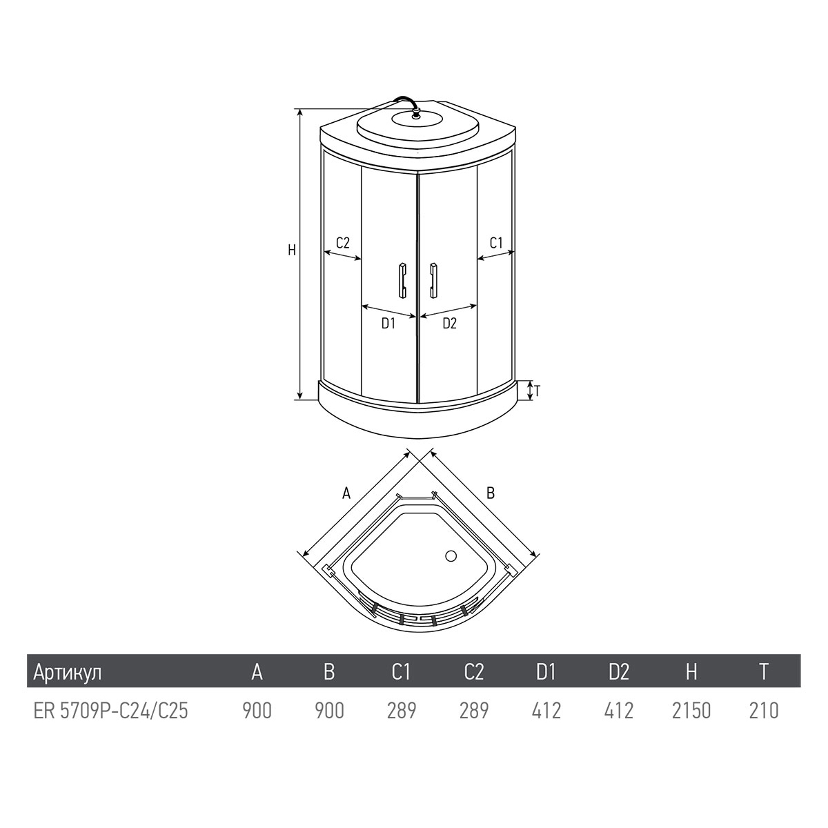 Душевая кабина Erlit 90х90 стекло тонированное, профиль хром (ER 5709P-C24)