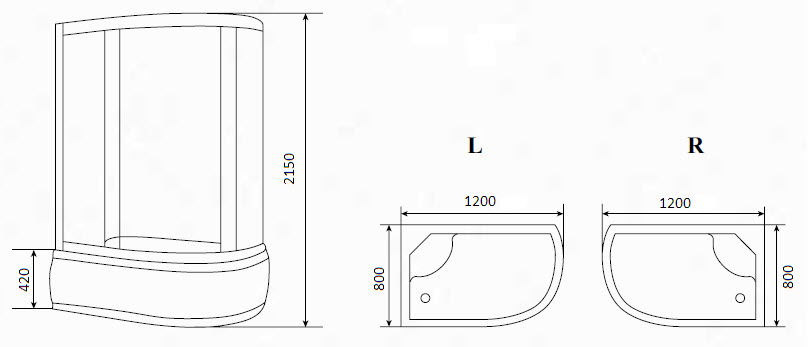 Кабина гидромассажная Timo Eco 1200*800*2150 L высокий поддон (TE-0720 L)