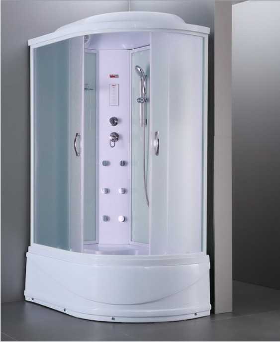 Акриловый поддон h - 42 см. Съемный экран. Сливная система clik-clak с сифоном. Алюминиевый профиль - белый матовый. Задние стенки - стеклянные белые. Передние стекла - структурные матовые. Сенсорный пульт управления. Подсветка верхняя. FM-радио. Вентиляция. Смеситель однорычажный - три режима. Тропический душ. Массажная лейка. Гидромассаж спины 6 джет. Саморегулирующие ролики. Стеклянная полочка. Зеркало. Ручки.БЕЗ СИЛИКОНОВАЯ СБОРКА!!!