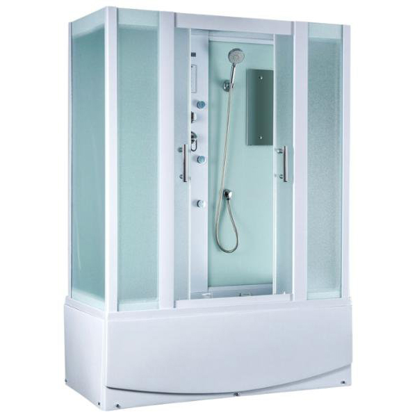 Акриловый поддон h - 52 см. Съемный экран из трех частей. Хромированный слив-перелив П/А с сифоном. Алюминиевый профиль - БЕЛЫЙ МАТОВЫЙ. Задние стенки - стеклянные белые. Передние и боковые стекла - структурные матовые. Сенсорный пульт управления. Подсветка верхняя. FM-радио. Вентиляция. Смеситель однорычажный - четыре режима. Тропический душ. Массажная лейка. Гидромассаж спины 6 джет. Наполнитель ванны. Саморегулирующие ролики. Стеклянная полочка. Зеркало. Ручки. Собирается изнутри. БЕЗ СИЛИКОНОВАЯ СБОРКА!!!