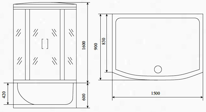 Акриловый поддон h - 60 см. Съемный экран из трех частей. Сливная система clik-clak со сливом-переливом.Акриловая армированная, монолитная задняя стенка. Анодированный, алюминиевый, хромированный профиль. Закаленное ударопрочное безопасное стекло толщиной 6 мм. Сенсорный пульт управления. Подсветка верхняя. FM-радио. Вентиляция. Смеситель однорычажный - четыре режима. Тропический душ. Лейка. Гидромассаж спины 6 джет. Наполнитель ванны. Двойные ролики. Стеклянная полочка. Подголовник. Откидное сиденье с допустимой нагрузкой до 80 кг. Зеркало. Ручки.