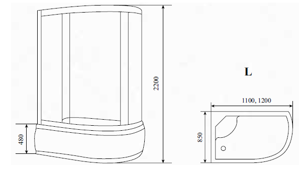 Кабина гидромассажная Timo Standart 1200*850*2200 L высокий поддон (T-1120 L)