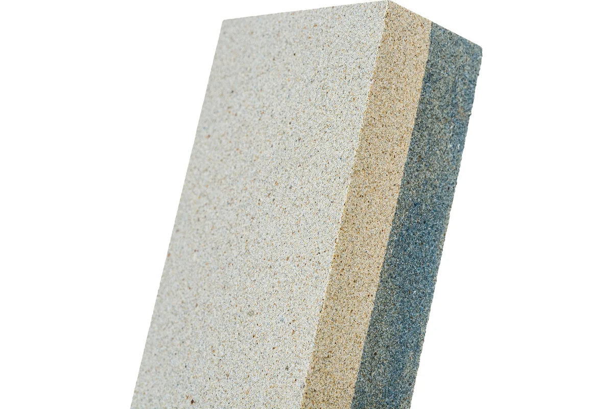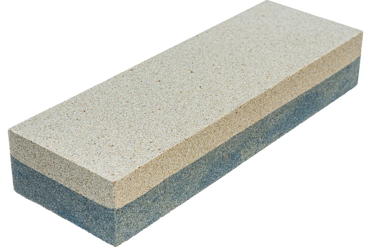 Два слоя с разной зернистостью. Предназначен для заточки режущей кромки столярного, слесарного и хозяйственного инструмента.
