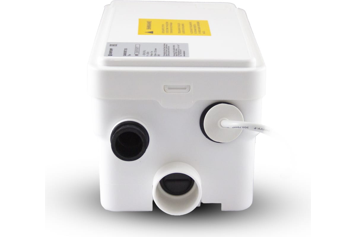 Бытовая канализационная насосная станция SANIVORT 255 M (напор 9 метров) — позволяет удалять сточные воды от раковин и душевых кабин, находящихся ниже уровня коллектора канализационной системы, а также в удаленных местах, где невозможно или нецелесообразно организовать канализацию самотеком. На верхней крышке станции имеется вентиляционное отверстие