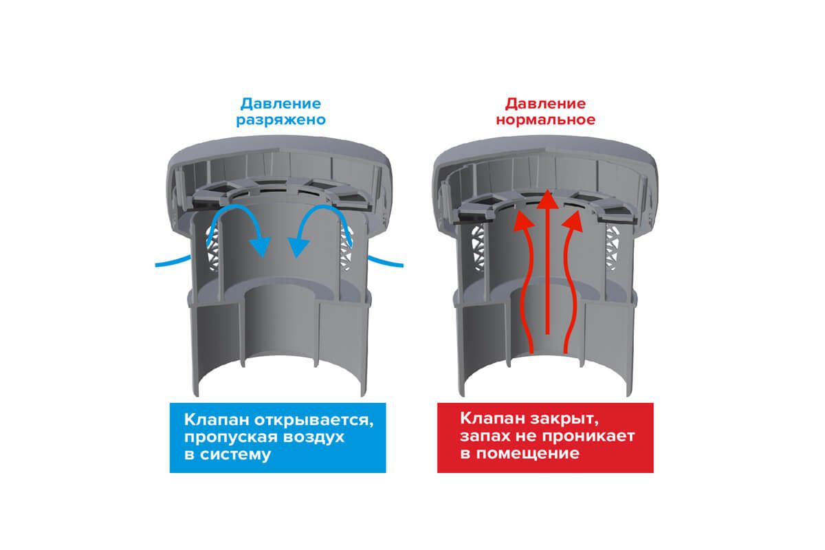 Благодаря своему функционалу воздушный клапан канализационного стояка блокирует выход канализационных газов и неприятных запахов, компенсирует давление в трубах, улучшает работу канализационной системы, образуя более простое прохождение сточных вод.