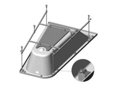Для регулировки ванны по высоте и уровню в комплект входят пластиковые ножки.