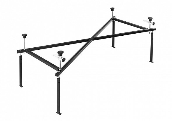 Каркас сварной для акриловой ванны Aquanet Bright 145 см представляет собой надежную конструкцию для установки ванны. Металлические детали каркаса подвергаются трехступенчатой обработке, когда сначала профильная труба проходит абразивную зачистку на специальном станке, после чего готовые детали обрабатывают каустической содой, и, просушив, покрывают с помощью электростатического распылителя молотковой краской по металлу. Это гарантирует равномерность окрашивания и стойкость покрытия, благодаря чему каркас выглядит аккуратно и не ржавеет. Расстояние от пола до нижней поверхности дна ванны можно регулировать максимально до 10 см с помощью ножек.