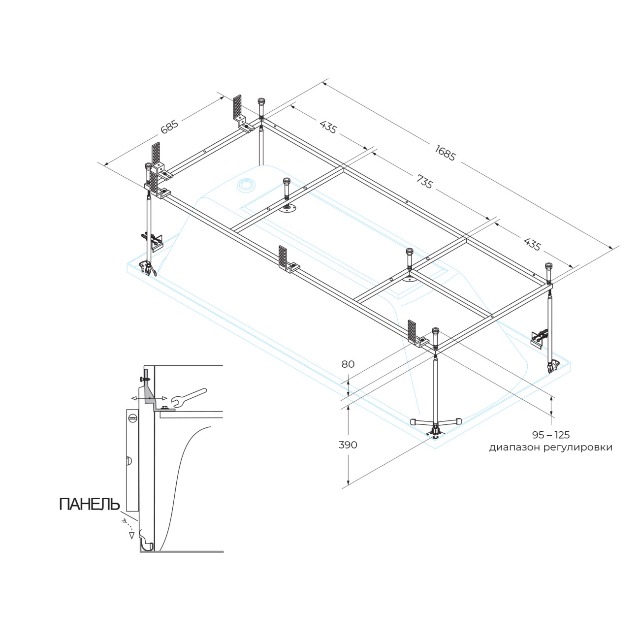 Каркас для ванны Cezares 168,5x68,5x47 (EMP-180-80-MF-R)