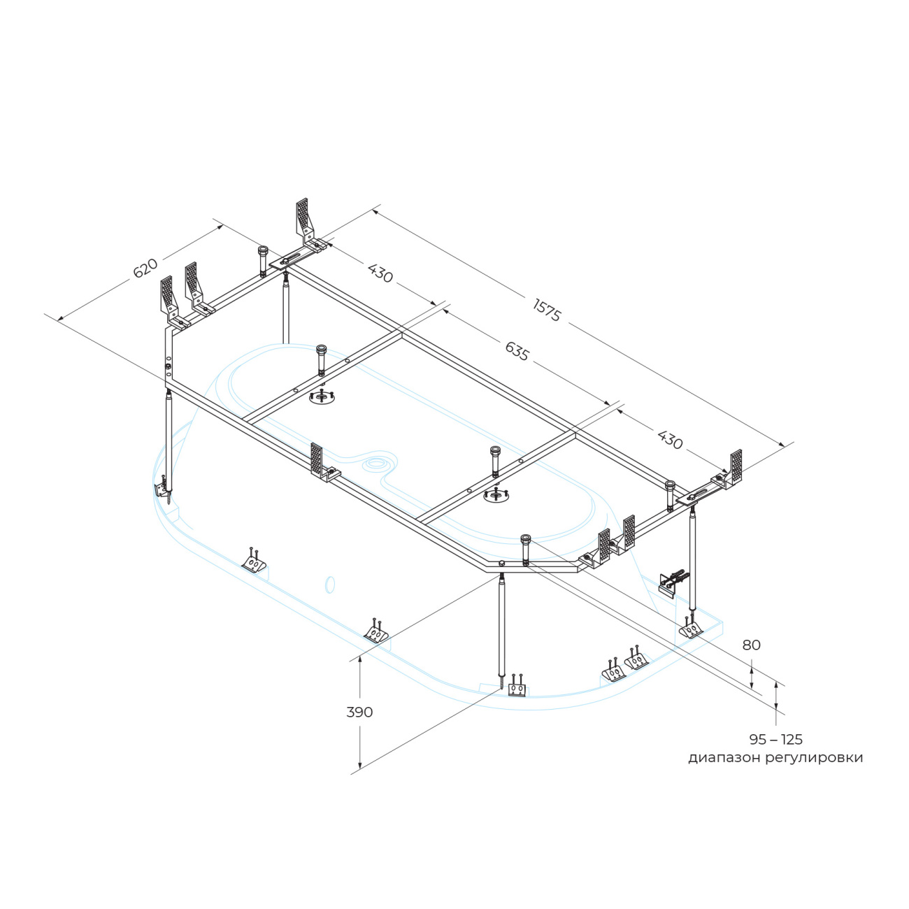 Каркас для ванны Cezares Metauro 157,5x62x47 (METAURO-MF)