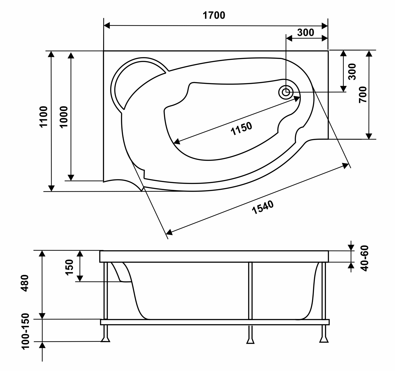- Каркас для ванны Eurolux Alexandria 170x110 левый