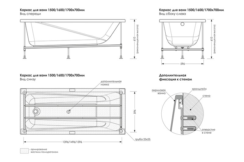 Каркас для ванны Melodia Simple/Moderno 170*70 (MFEUNI04)