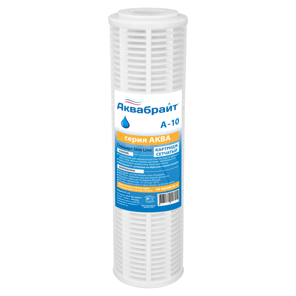 Картридж Аквабрайт Аква Net А-10 10SL (пластиковая сетка, 70 мкм) (А-10)