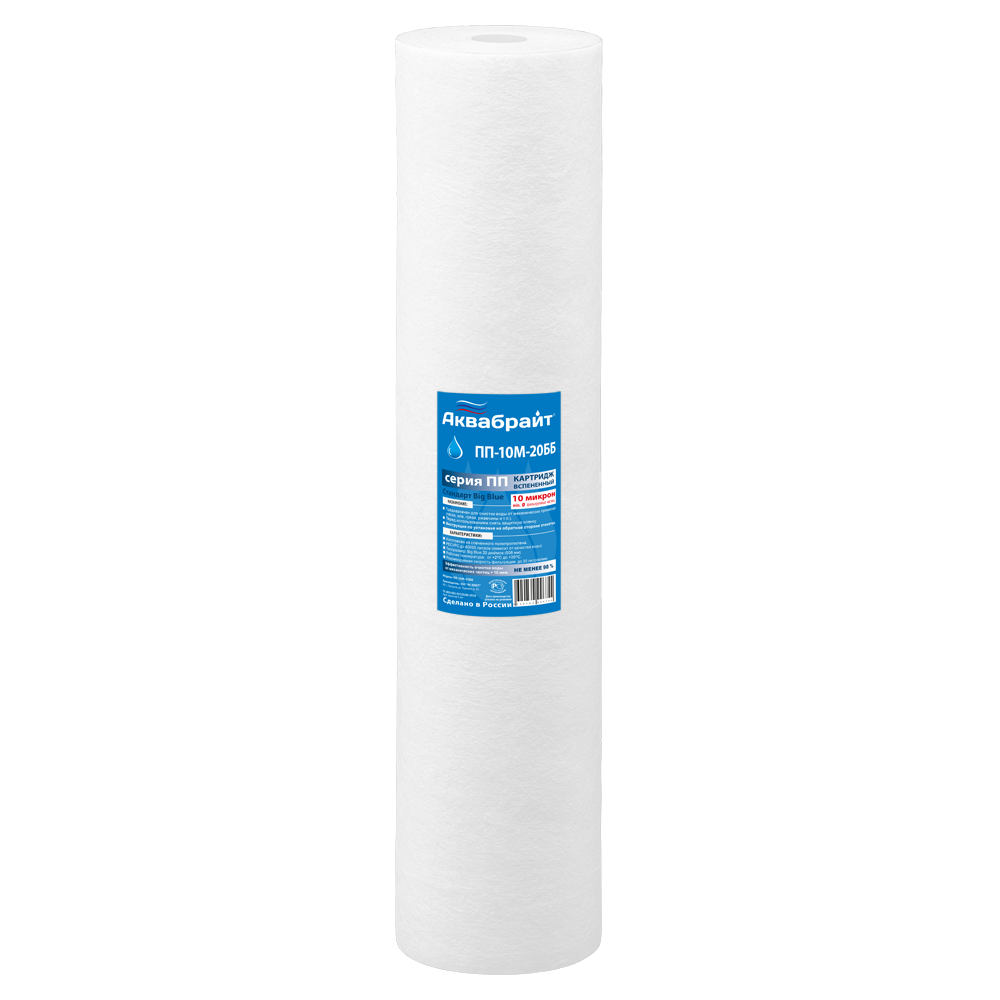 Картридж Аквабрайт ПП-10М 20BB 10 мкм (вспененный полипропилен, для холодной воды) (ПП-10 М-20 ББ)