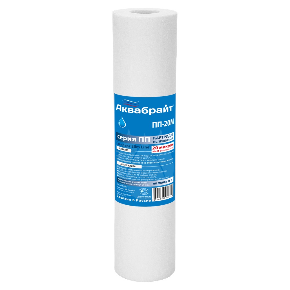 Картридж Аквабрайт ПП-20М 10SL 20 мкм (вспененный полипропилен, для холодной воды) (ПП-20 М)