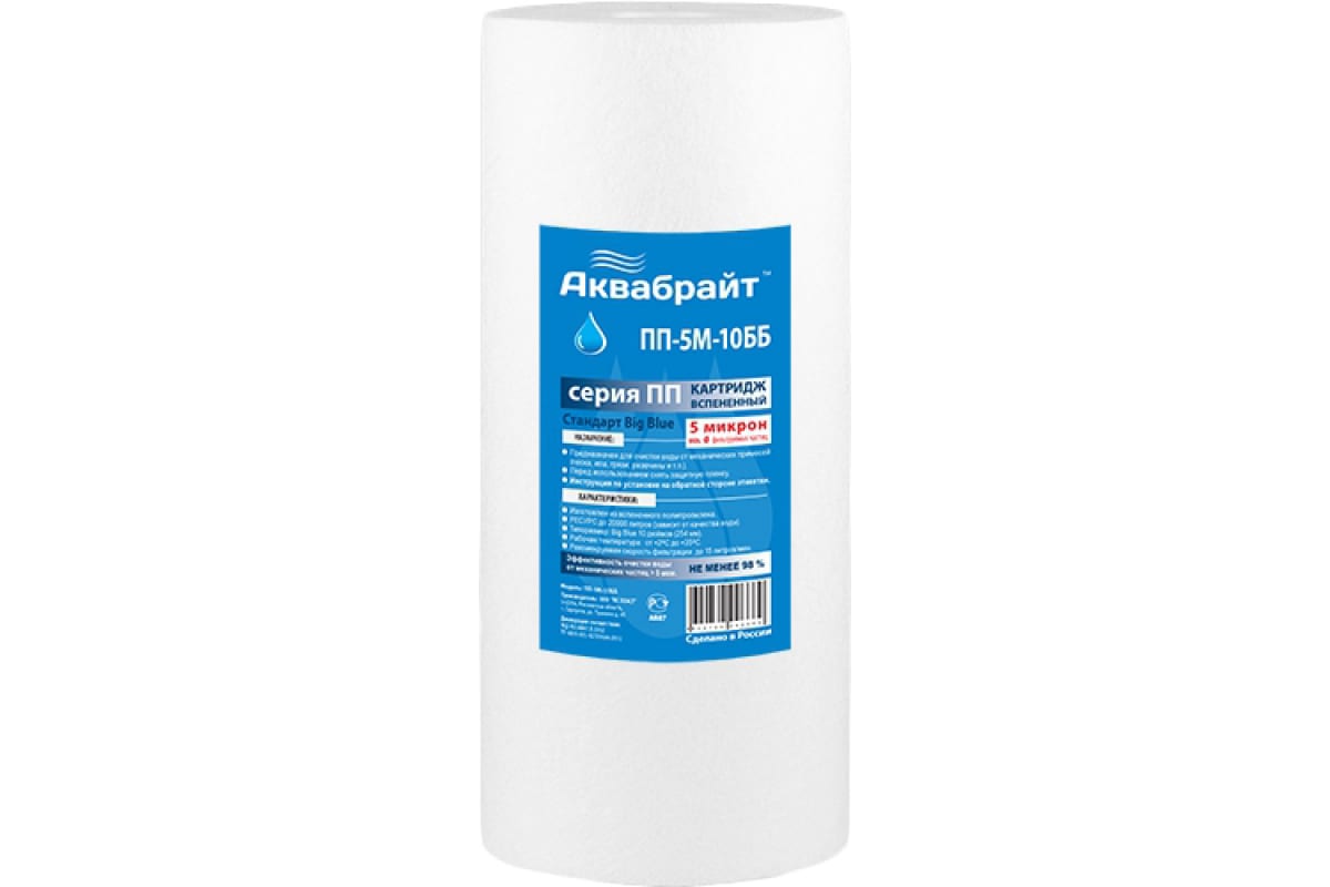 Картридж Аквабрайт ПП-5М 10BB 5 мкм (вспененный полипропилен, для холодной воды) (ПП-5 М-10 ББ)