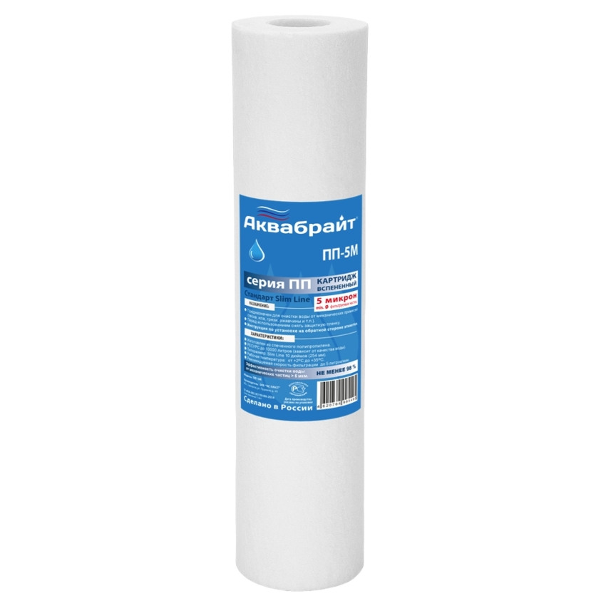 Картридж Аквабрайт ПП-5М 10SL 5 мкм (вспененный полипропилен, для холодной воды) (ПП-5 М)
