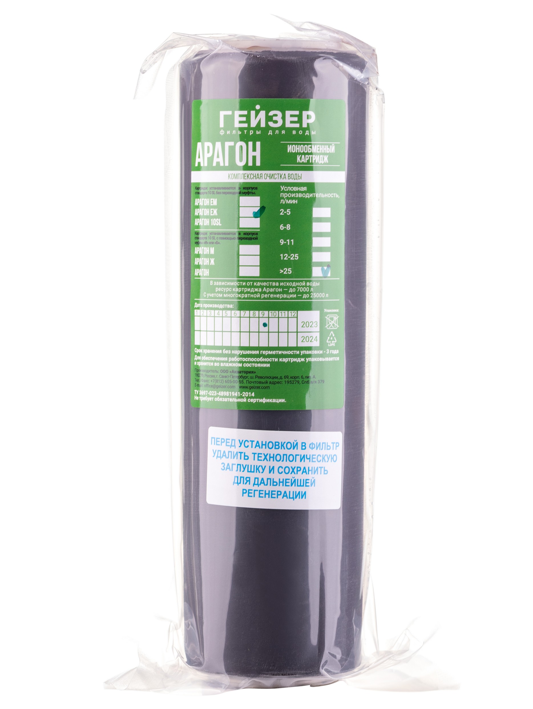 Арагон-ЕЖ – картридж из материала Арагон, разработанный для очистки жесткой воды (средний уровень минерализации). Имеет 3 уровня фильтрации (механический, ионообменный и сорбционный).