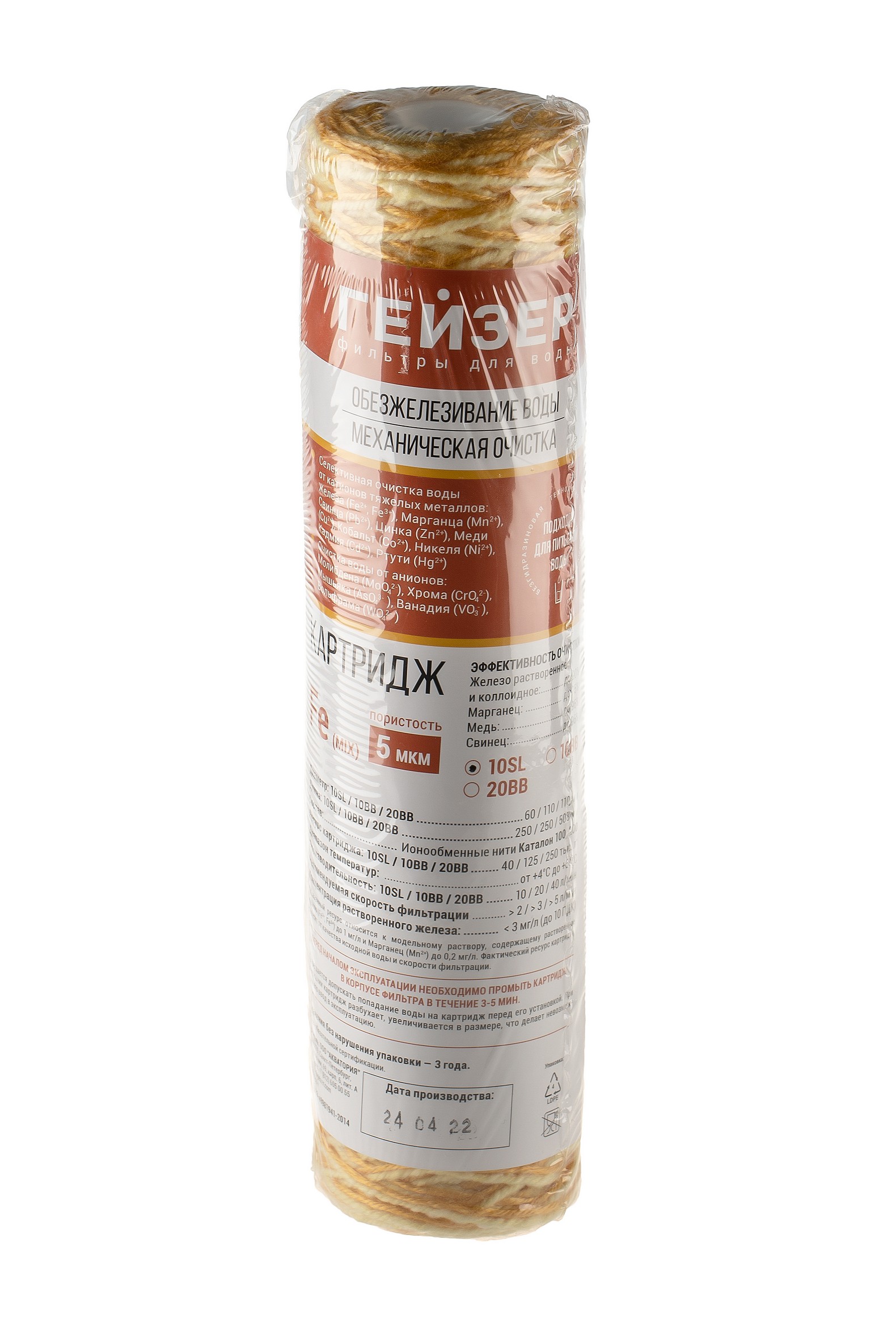 Картридж для удаления железа Гейзер Fe (mix) - 10 SL (для горячей и холодной воды) (28070)