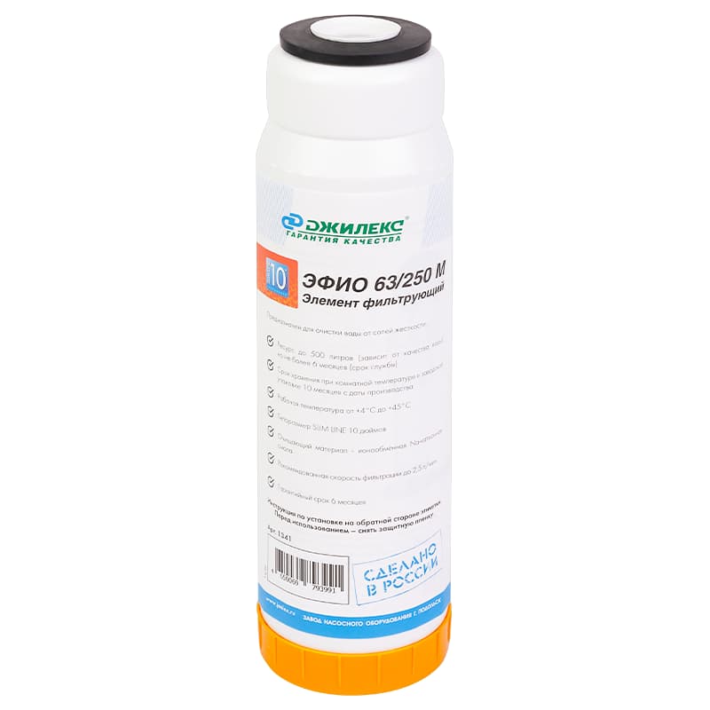 Картридж для умягчения жесткой воды Джилекс ЭФИО 63/250М 10SL (ионообменная смола, для холодной воды) (1341)