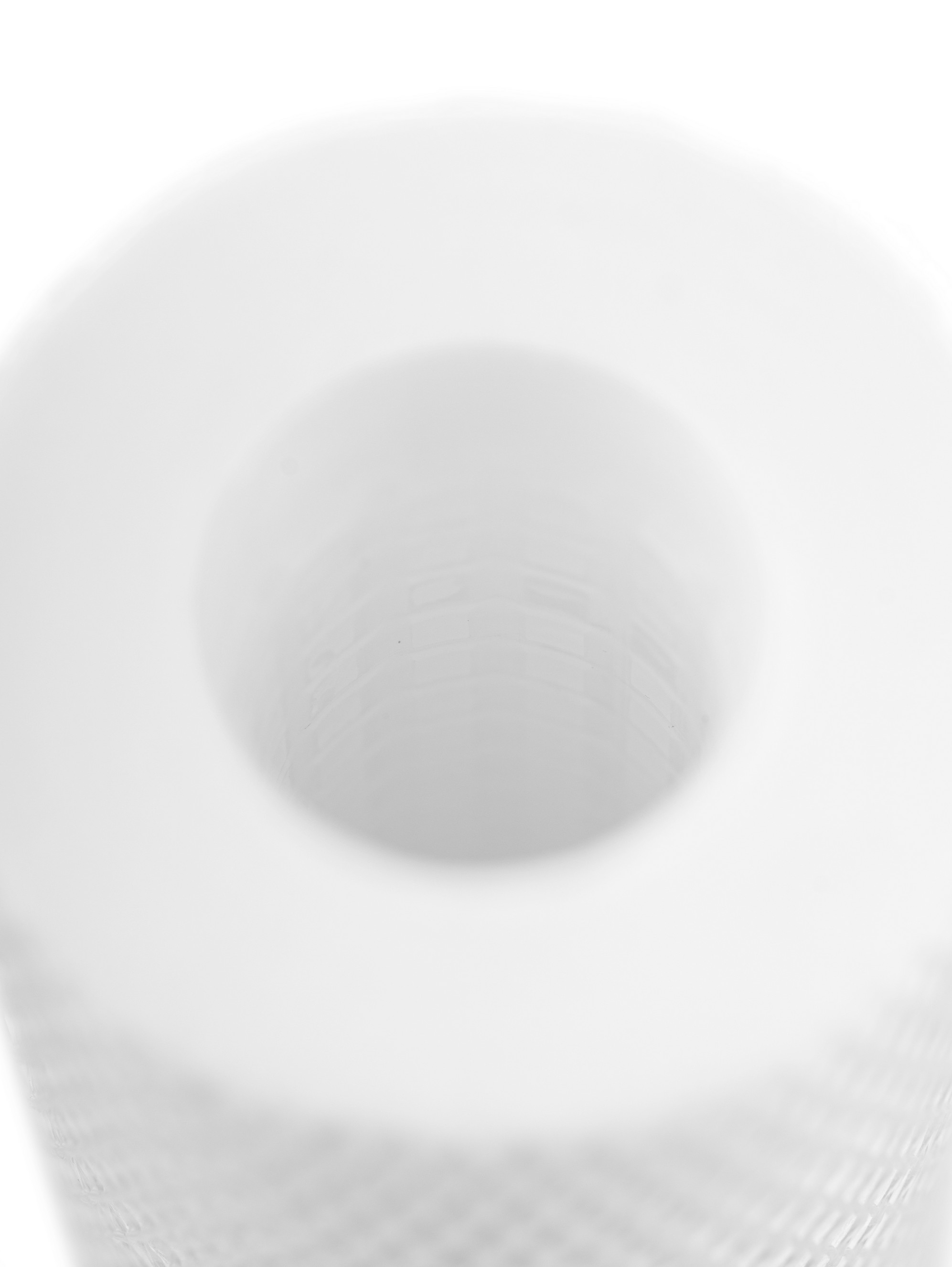 Картридж ПФМ 10/5 - 20SL изготовлен из вспененного полипропилена. Имеет градиентную пористость: диаметр поры уменьшается при движении воды внутрь картриджа, благодаря чему работает весь объем фильтрующего материала.