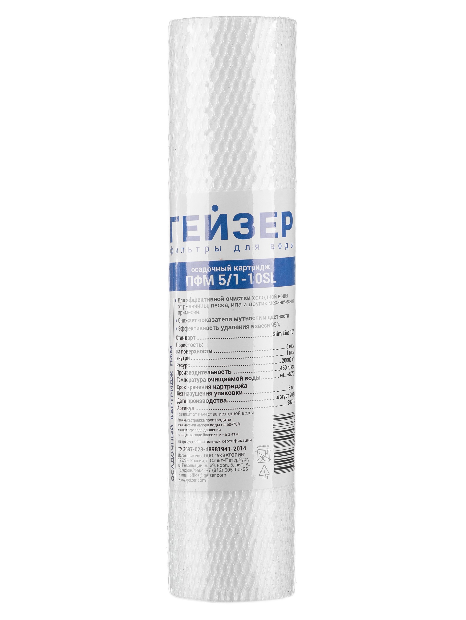 Картридж Гейзер ПФМ 5/1 - 10SL (вспененный полипропилен, для холодной воды) (28215)