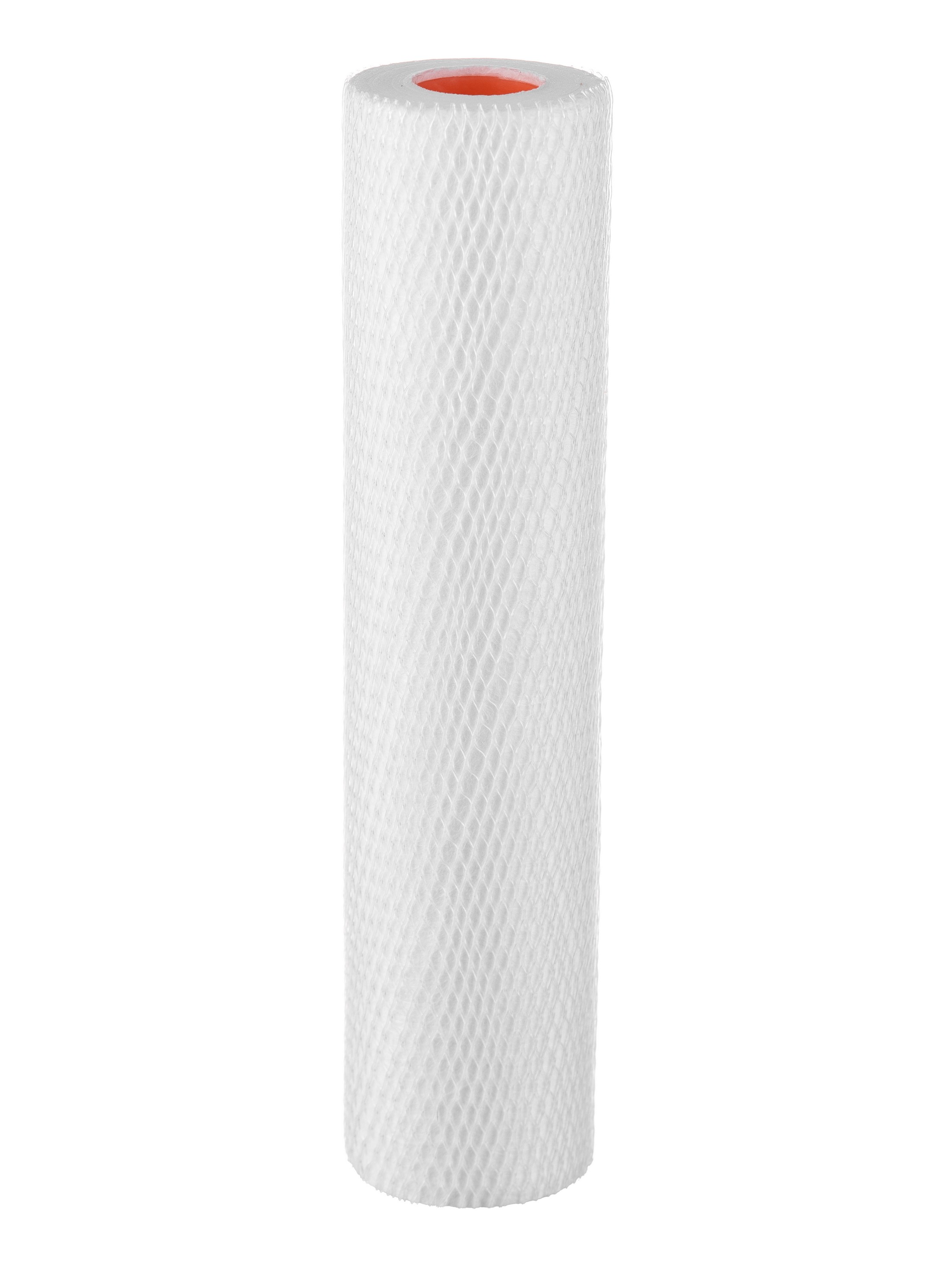 Картридж ПФМГ 20/10 - 10SL изготовлен из вспененного полипропилена. Имеет градиентную пористость: диаметр поры уменьшается при движении воды внутрь картриджа, благодаря чему работает весь объем фильтрующего материала.