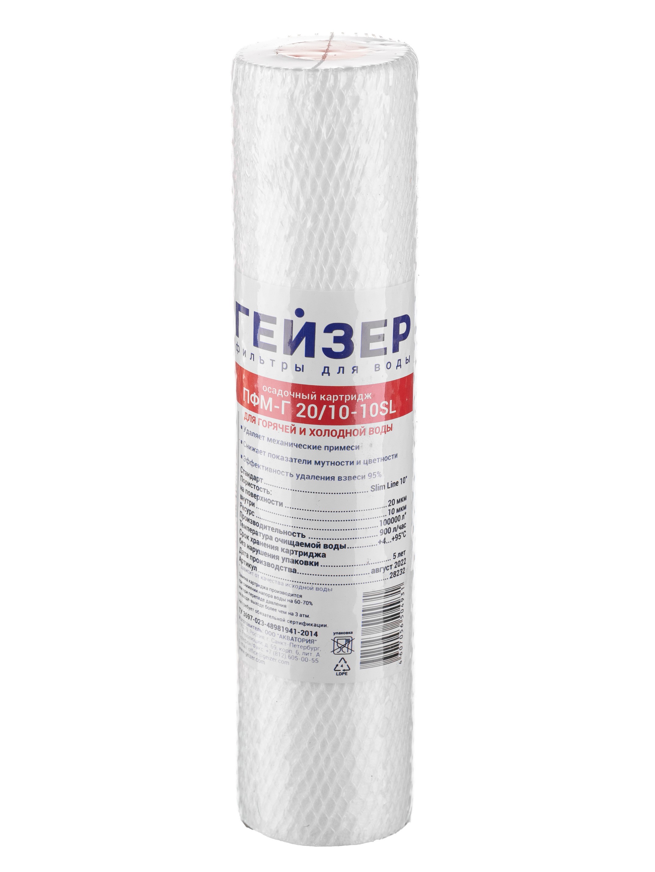 Картридж Гейзер ПФМГ 20/10 - 10SL (вспененный полипропилен, для холодной и горячей воды) (28232)