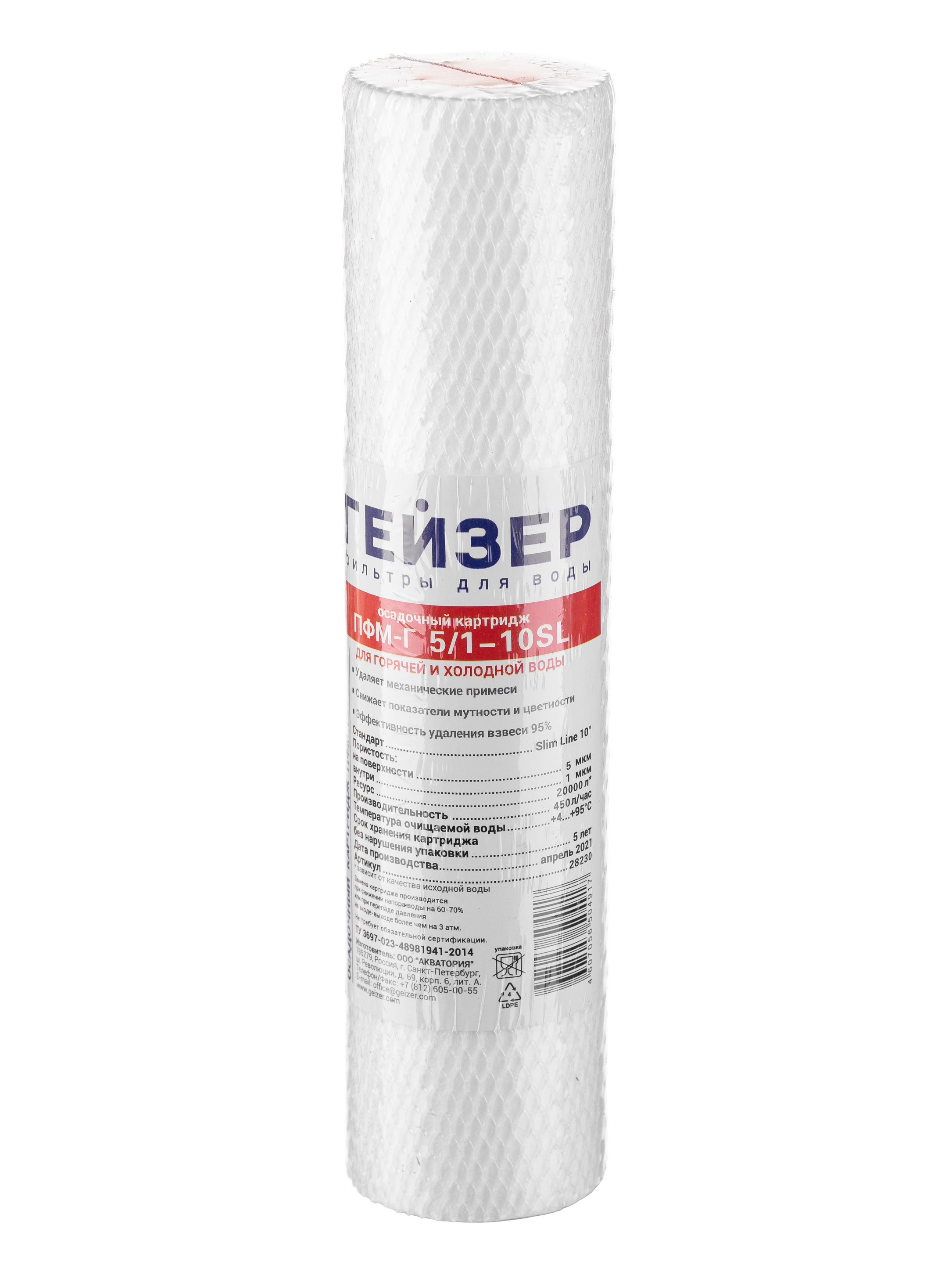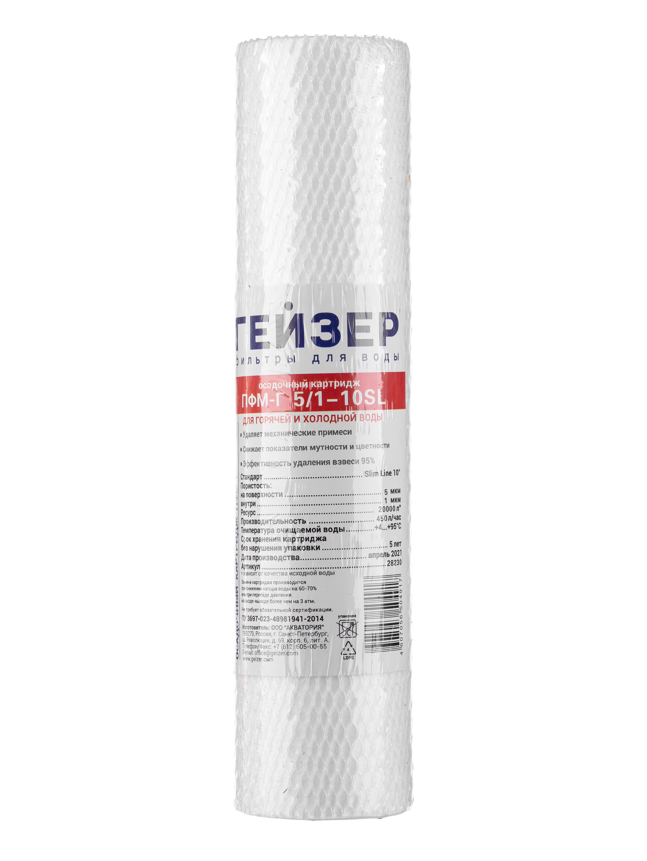 Картридж Гейзер ПФМГ 5/1 - 10SL (вспененный полипропилен, для холодной и горячей воды) (28230)