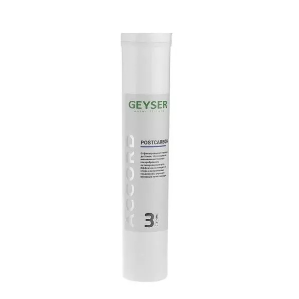 Удаляет из воды хлор и органические загрязнения, улучшает вкусовые качества воды. Придает воде кристальную чистоту и прозрачность