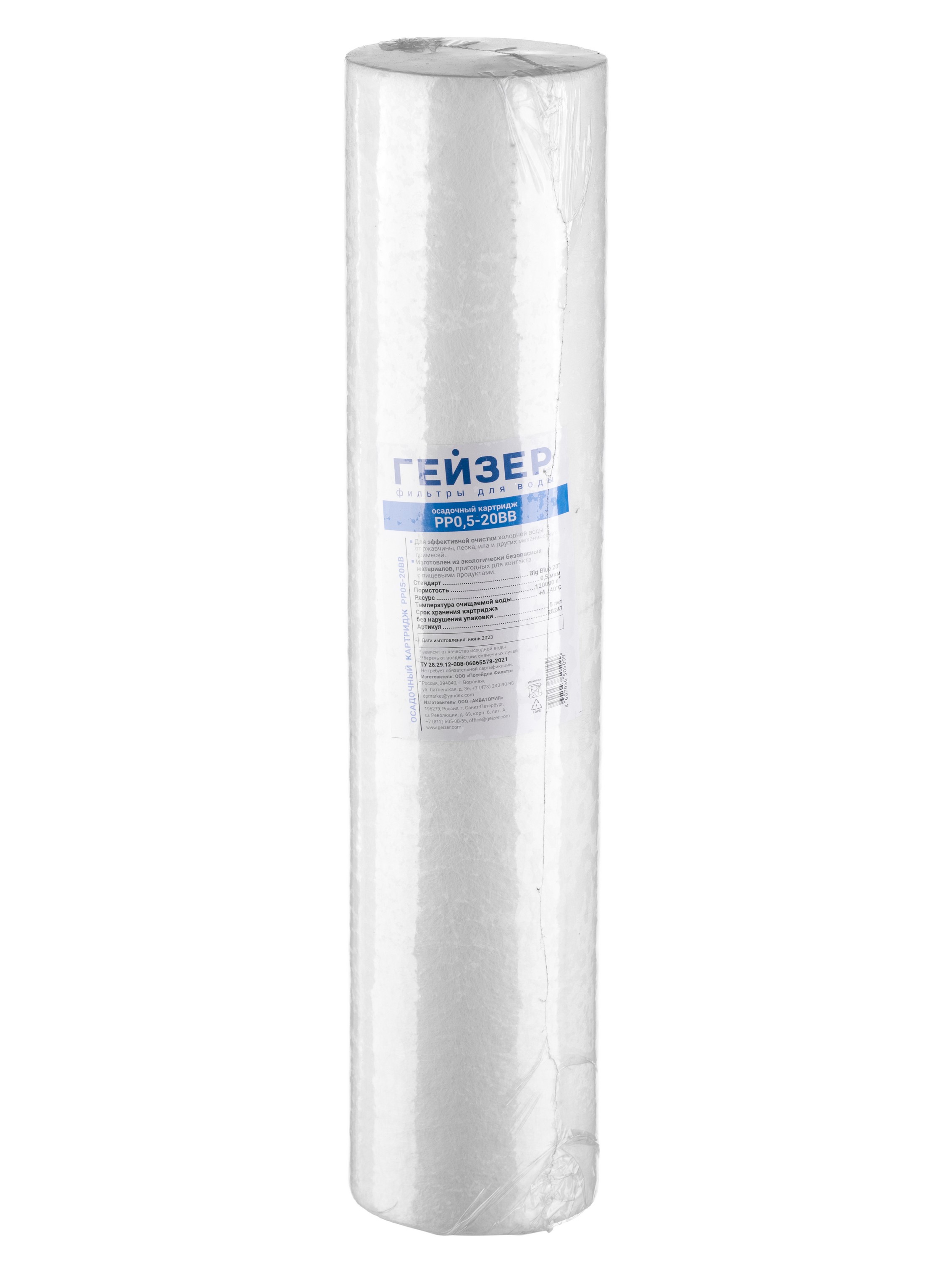 Картридж Гейзер PP 0,5 - 20BB (вспененный полипропилен, для холодной воды) (28247)