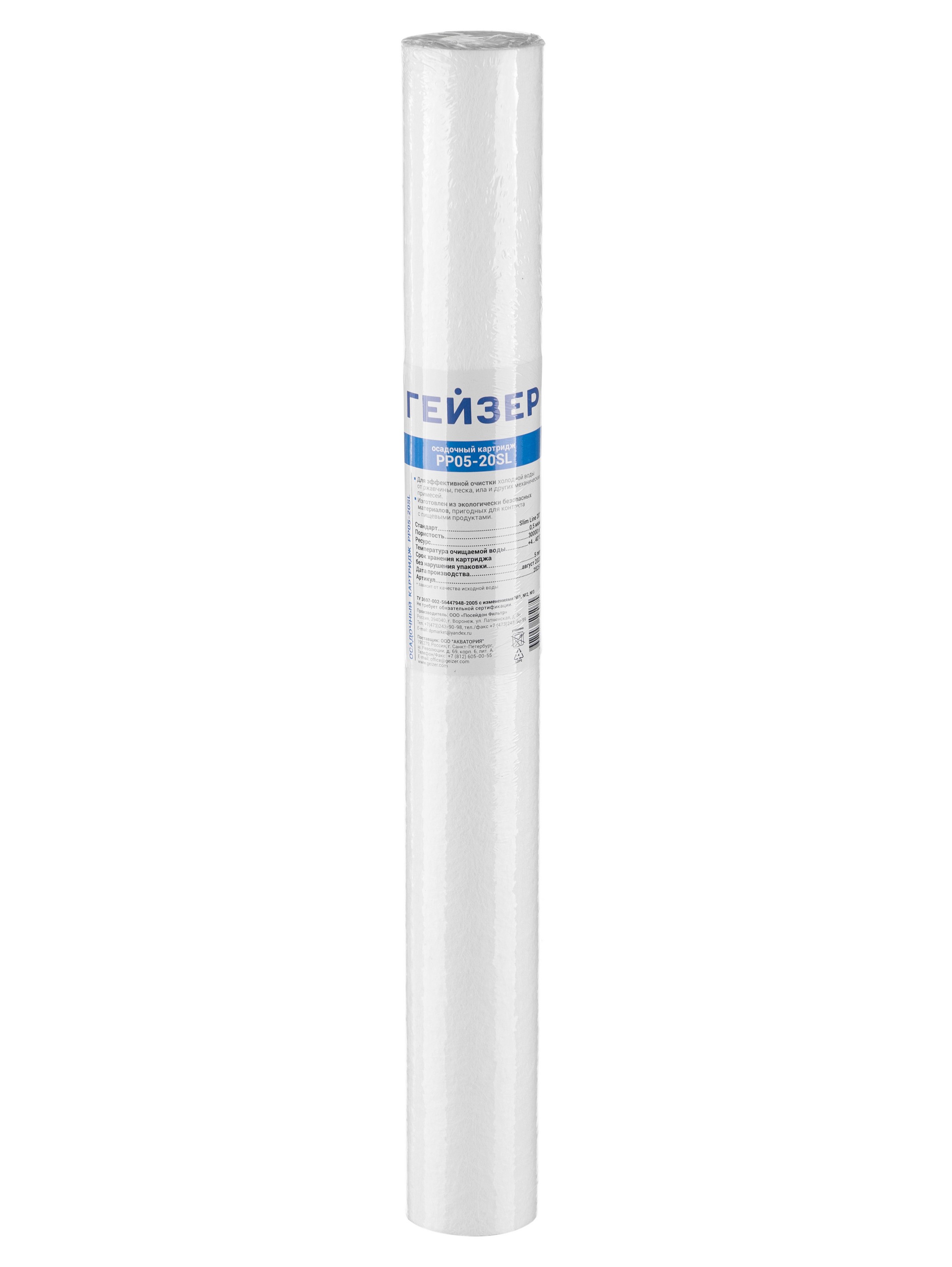 PP 0,5 - 20SL - картридж из вспененного полипропилена, предназначен для механической очистки воды от ржавчины, грязи, песка и других нерастворимых примесей размерами более 0,5 мкм. Восстановлению не подлежит, после окончания ресурса заменяется на новый.